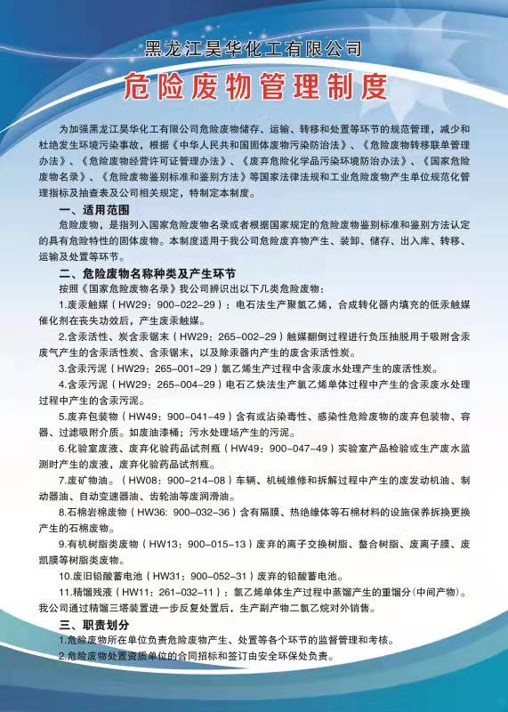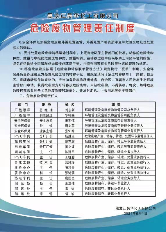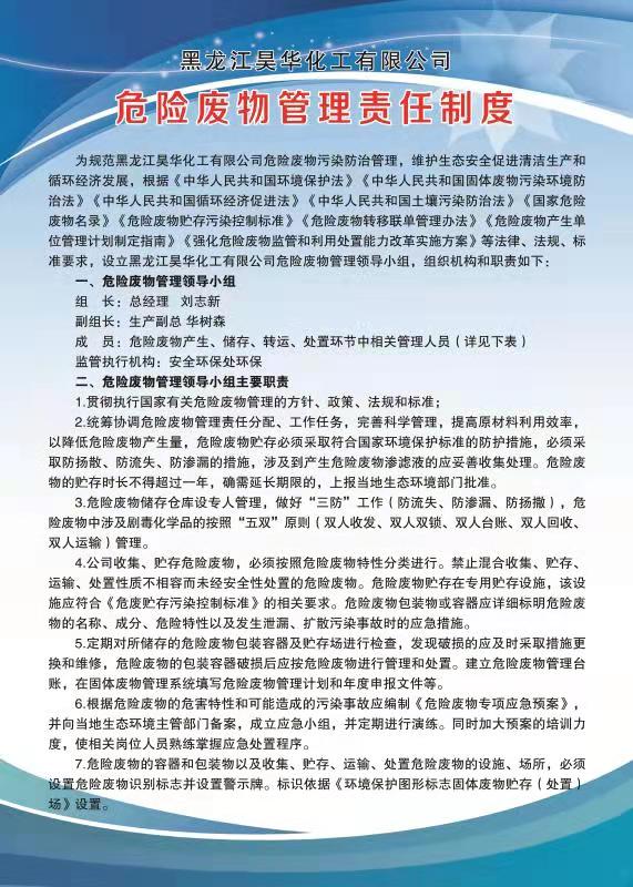 黑龙江昊华化工有限公司危险废物管理责任制度