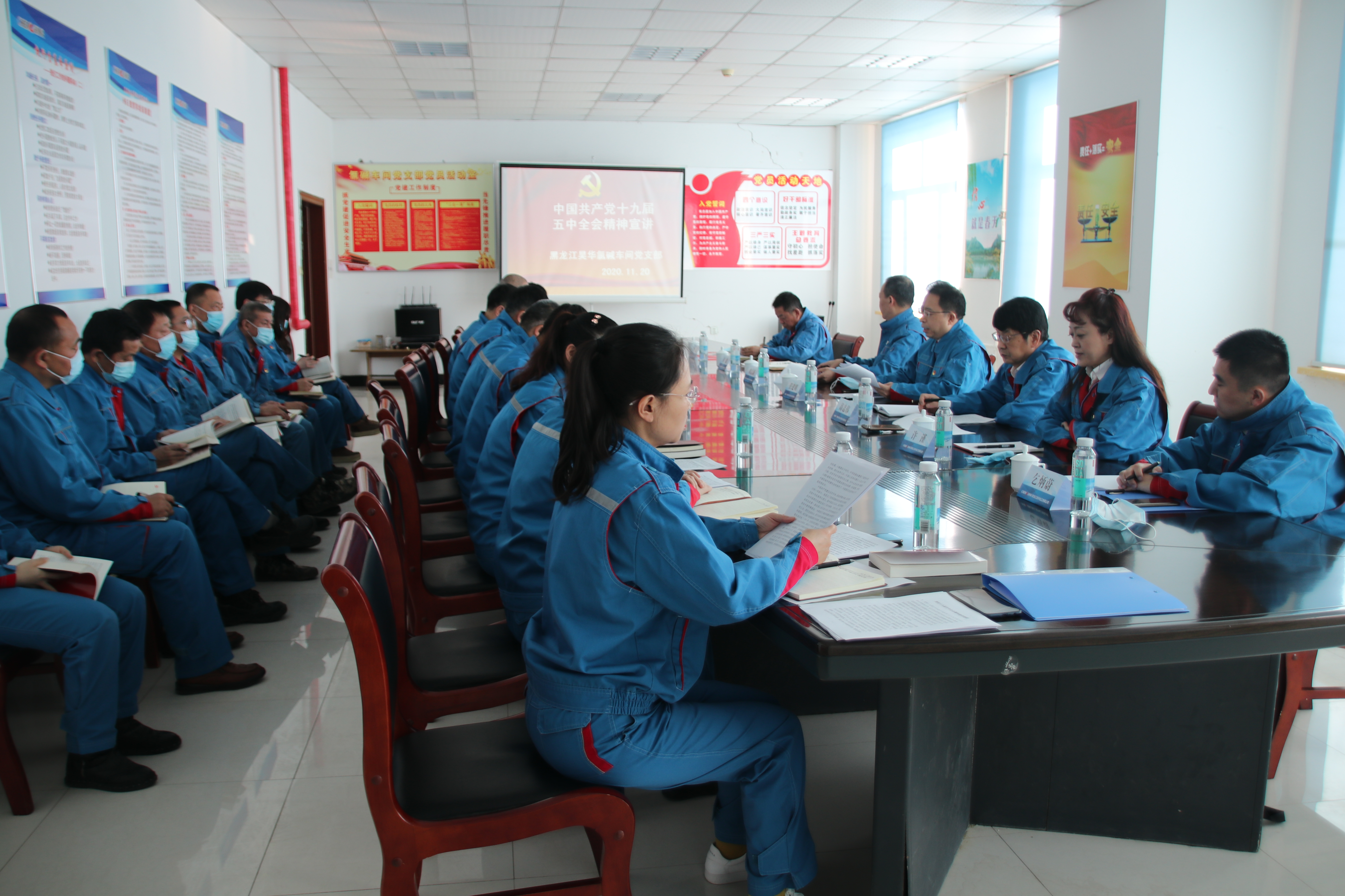 11月20日上午,中国化工集团有限公司副总经理任建明、新材料有限公司党委书记高志伟一行五人,来到黑龙江昊华化工有限公司氯碱车间党支部,宣讲党的十九届五中全会精神。