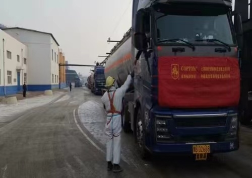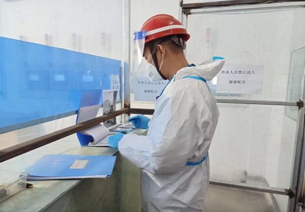 成品工段,党员、处长助理刘佳滨认真组织防疫,落实防疫要求,对外来人员进行现场测温及身份登记。安排专人每天两次进行室内消杀,认真进行登记记录,严格执行外来车辆司乘人员不允许下车等管理规定,承包商装卸人员对集装箱车辆进行装车前打开厢门、装车结束关闭厢门。