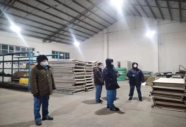五金原料工段配合公司相关部门做好后勤保障,党支部书记王立伟带领党员工段长武娟等驻厂保管员连夜接收、发放床铺被褥,使驻厂员工及时领取床铺被褥,具备住宿条件。