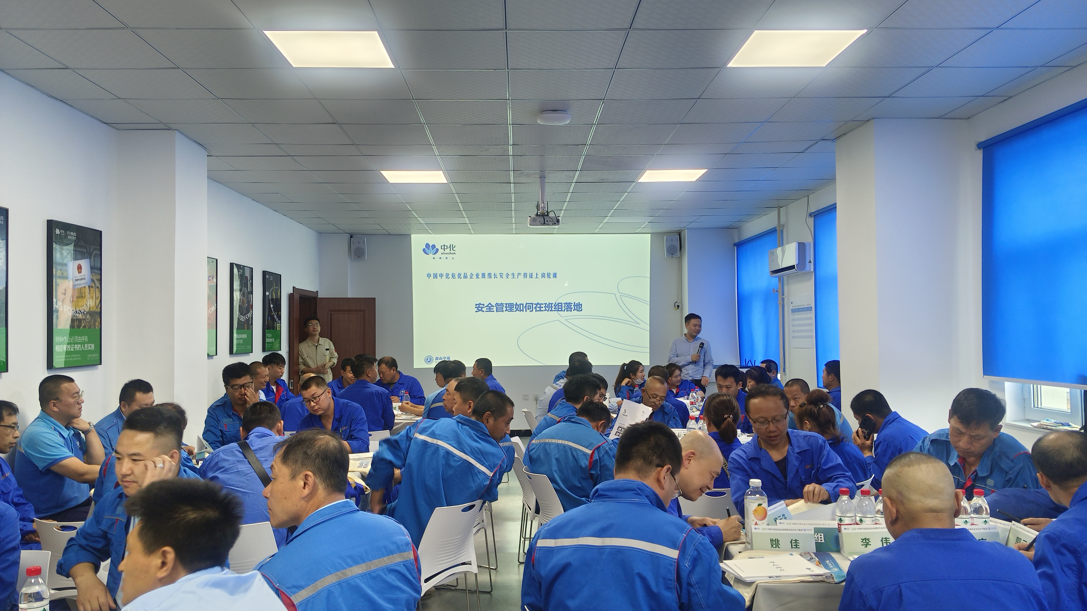 此项培训分为线上和线下两个阶段进行,内容涵盖班组建设、班组安全管理基础、班组现场安全管理、班组应急管理、班组安全生产管理等内容。学员们首先要完成32学时的线上理论课程学习,参加线上理论考试,达到80分以上合格成绩后接受为期3天的集中培训,再经过线下实操考核检验学习成果,成绩达标后获得“中国中化班组长安全生产培训证书”,考核不达标的不予颁发培训合格证书。集中培训在我公司质检中心二楼班组长培训教室开展。培训期间,我公司参训的228名班组长全部按时完成了线上理论学习,线上考试成绩均在合格线80分以上,并按要求完成了线下集中培训和实操考核,实操考核成绩将于八月份公布。